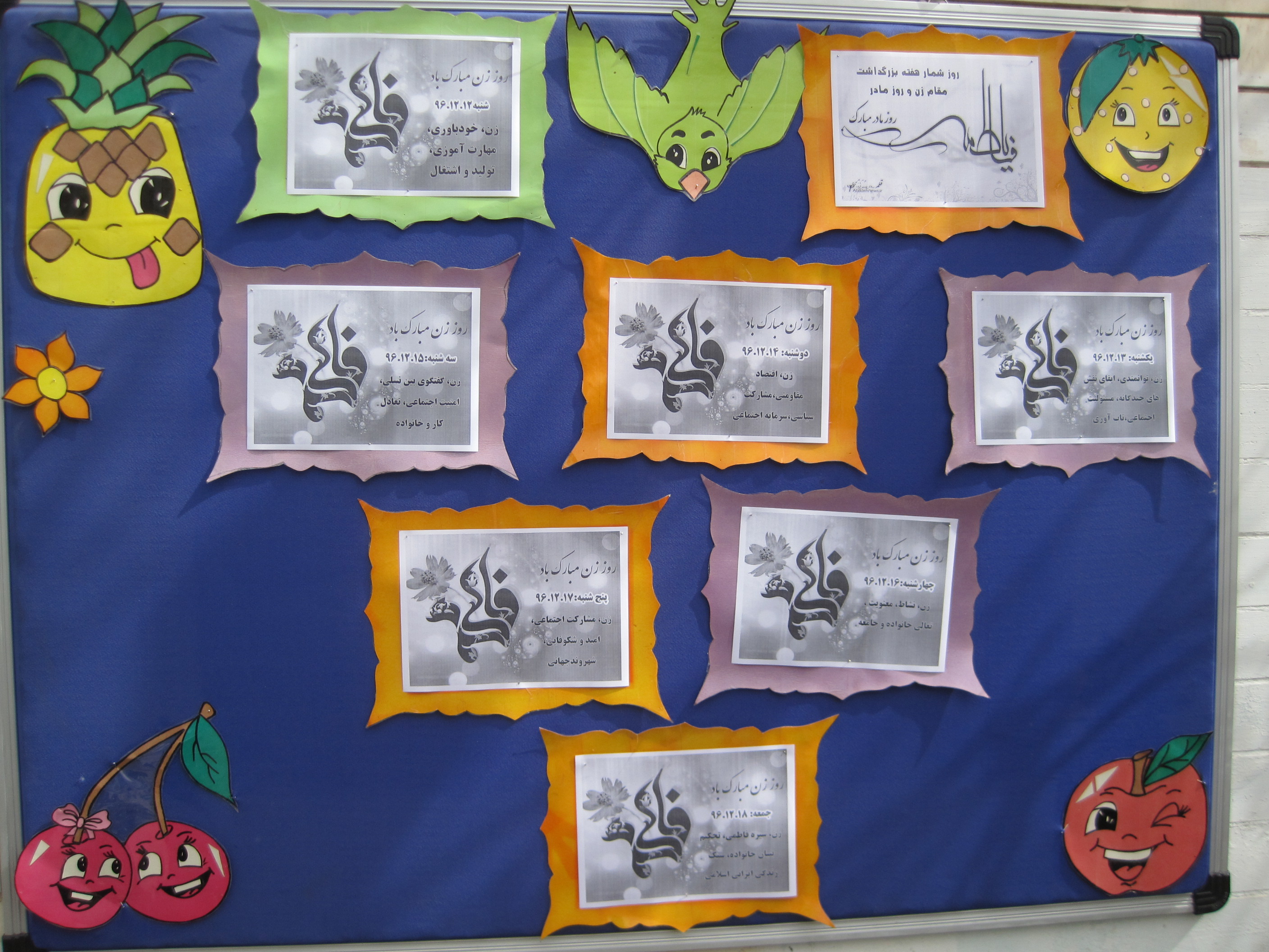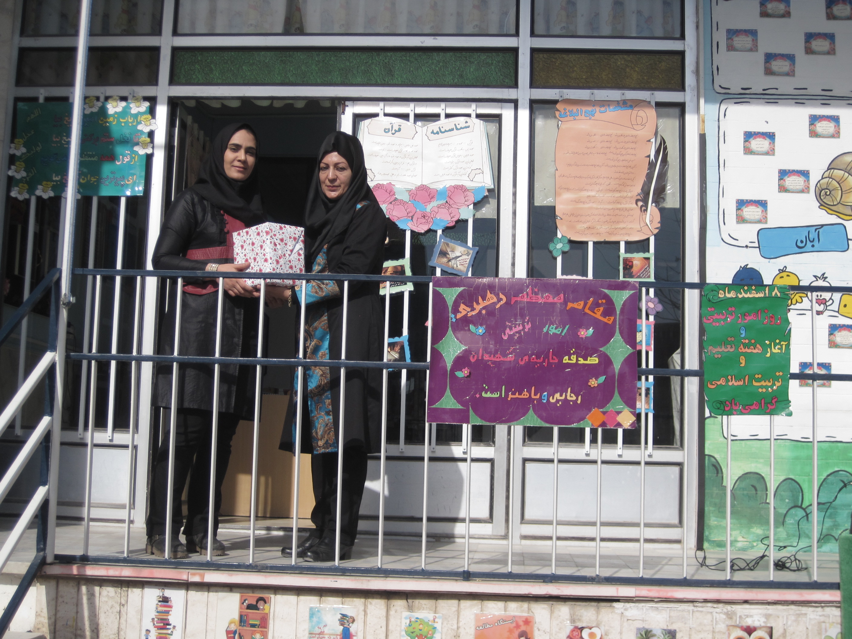 * اهداي هديه اي به رسم يادبود از طرف دبستان به دانش آموزاني كه همنام با حضرت فاطمه زهرا (س) بودند.