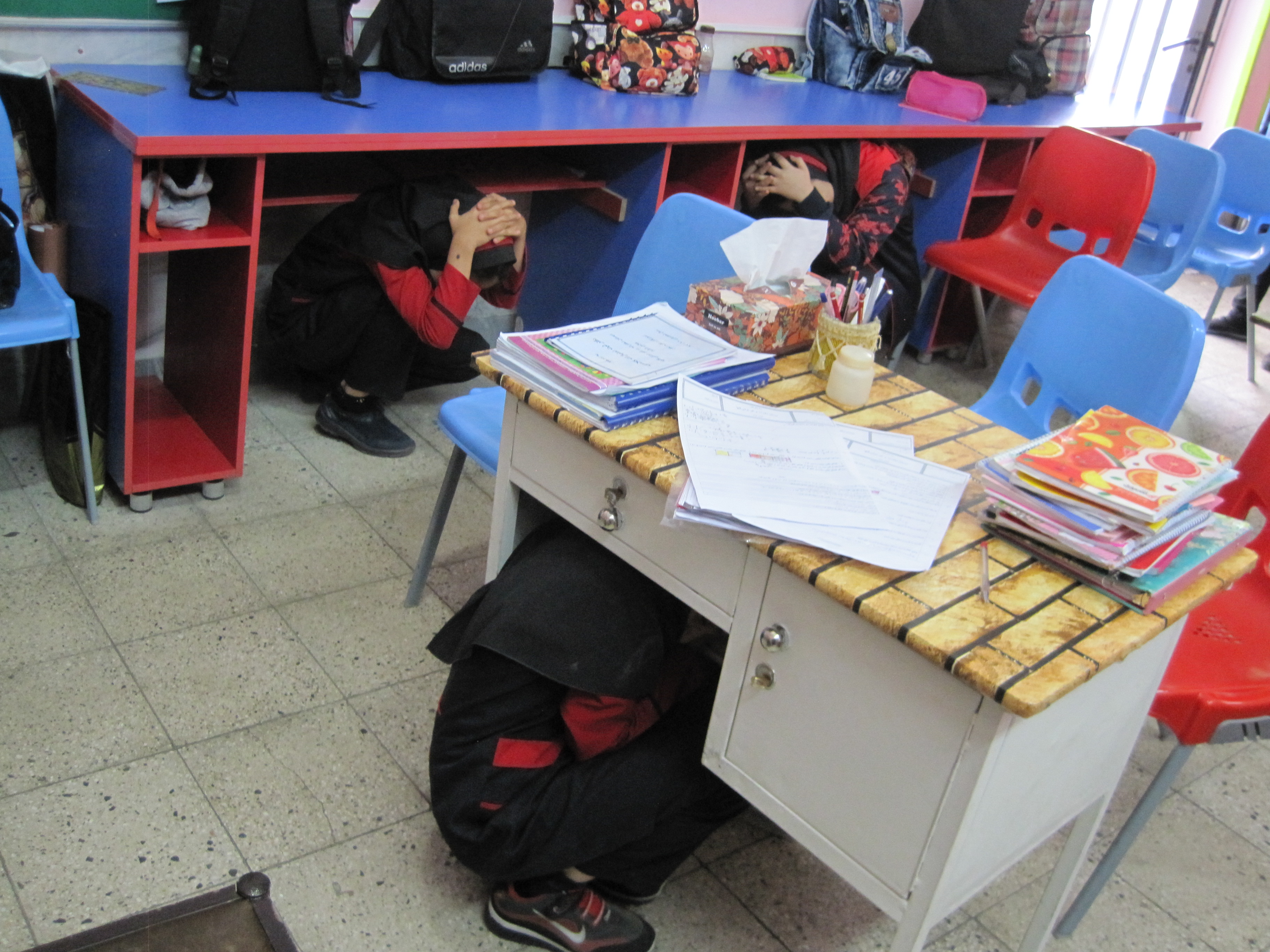 * همكاري آموزگاران در اجراي مانور زلزله