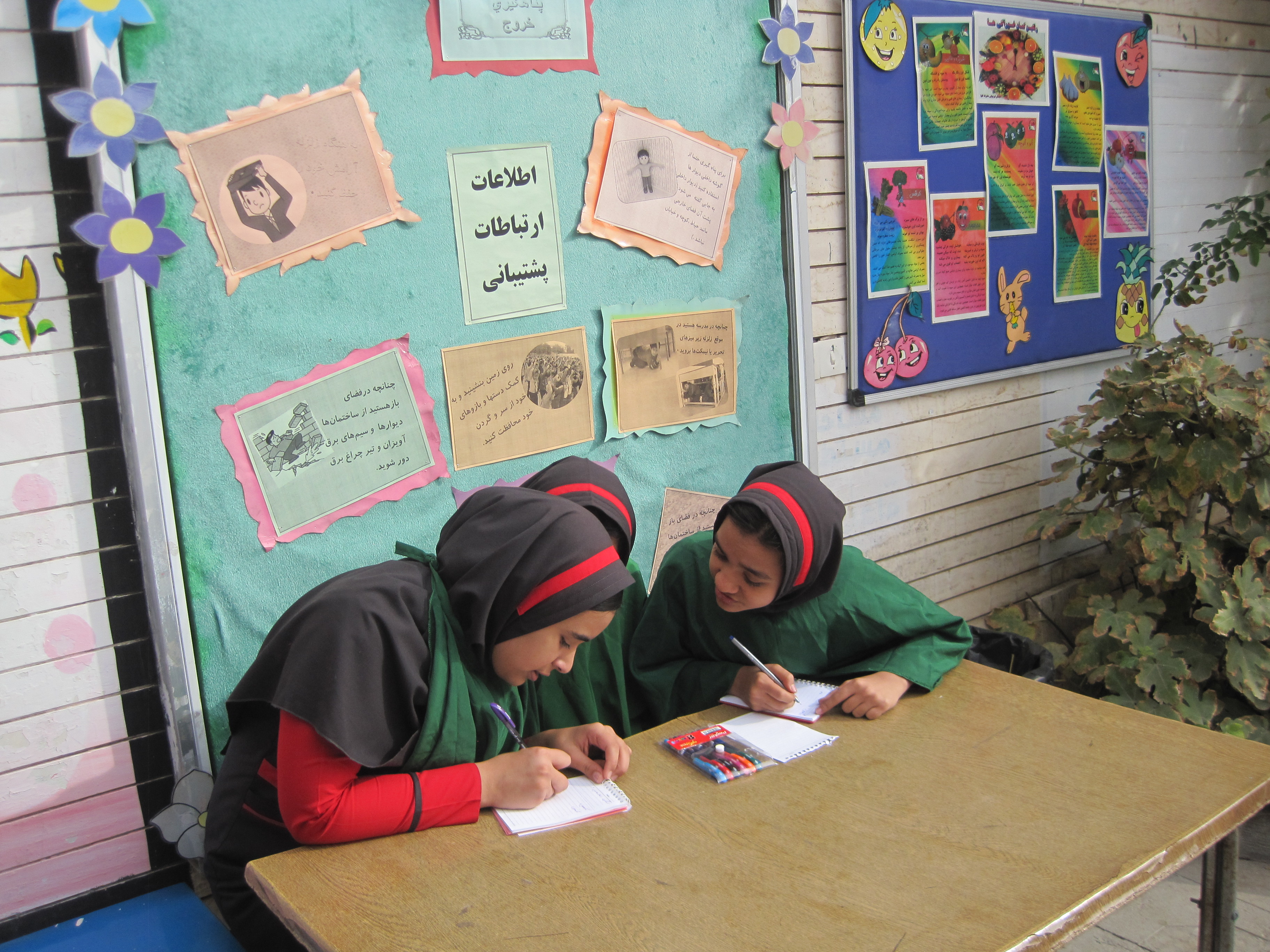 * تشكيل گروه هاي سبز (اطلاعات، ارتباطات، پشتيباني)، قرمز (نجات و آتش نشاني) و سفيد (گروه امداد و نجات (هلال احمر) توسط دانش آموزان با همكاري اعضاي شوراي دانش آموزي
