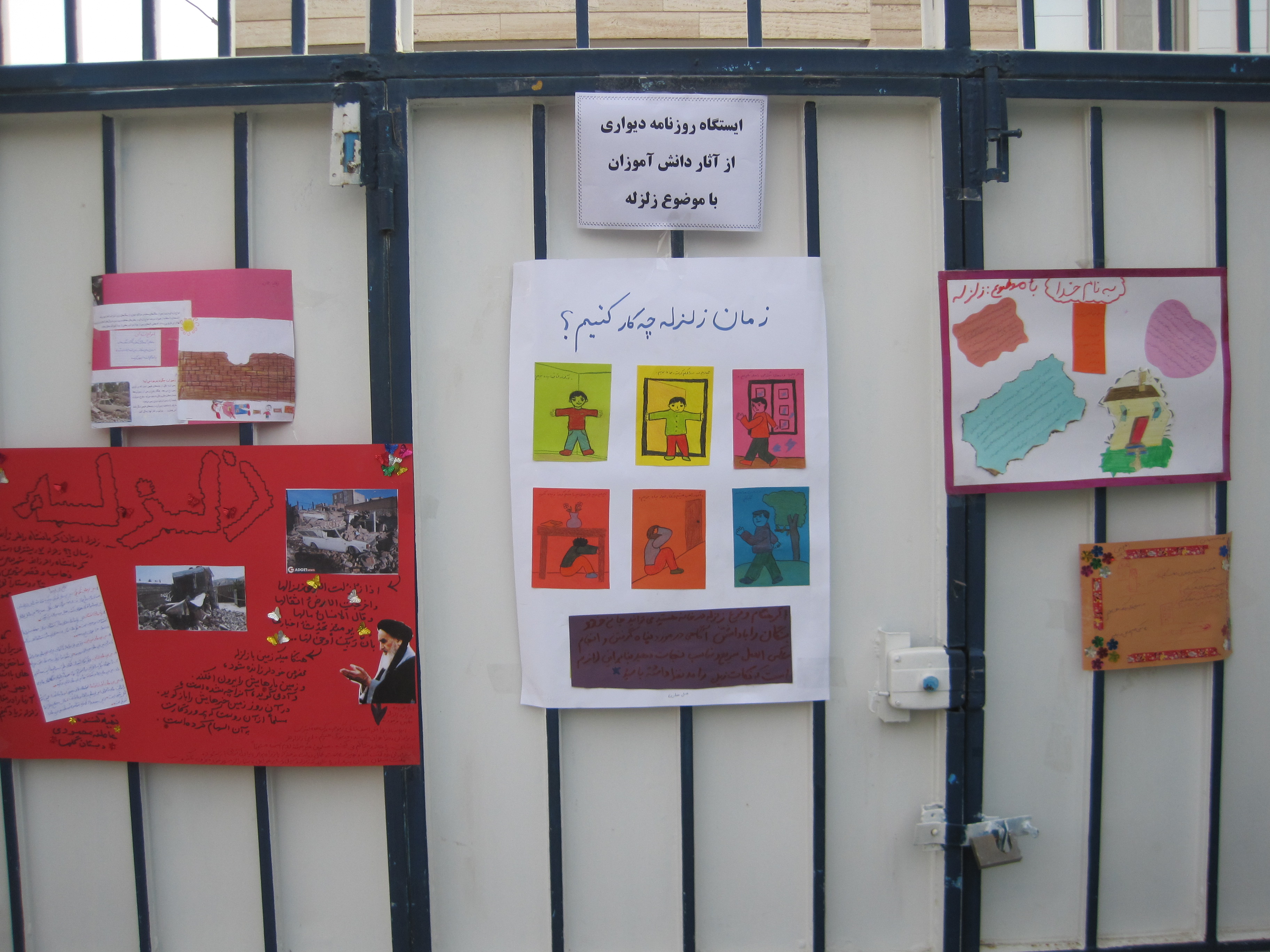* نصب تراكت و پوستر در رابطه با زلزله و اقدامات لازم